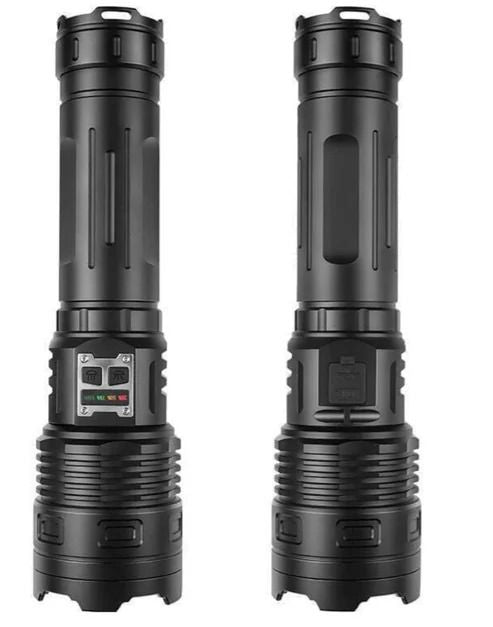 Powerful Illumination: Multiple Lighting Modes: High-Quality Construction: Long-Lasting Battery: Impressive Beam Distance: Convenient Zoom Feature: Certified Quality: Versatile Applications: Illuminate your adventures with the Super Bright Rechargeable Tactical Laser Zoom Flashlight, the ultimate tool for all your outdoor and emergency lighting needs.