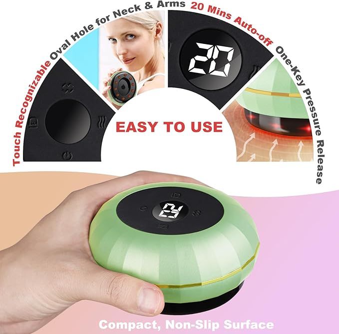 - IMPROVED DESIGN? - Our improved model features a powerful 2200mAh battery that provides up to 150 minutes of continuous use. It features touch-sensitive control buttons, an oval suction hole for effortless use on the neck and arms, and a built-in anti-slip structure. Its quiet operation ensures a disturbance-free session, making it an ideal, portable choice for self-administered electro-cupping therapy.